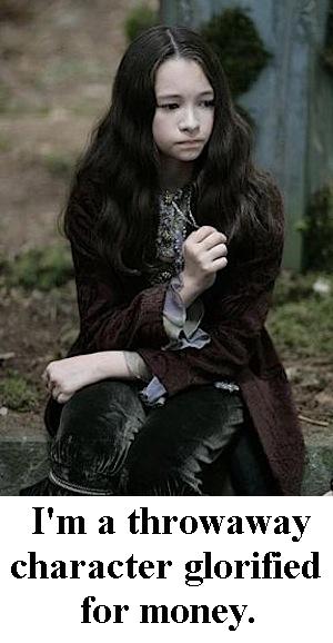 responsibility to these fans to be faithful to the source material (see also: problem one). On this Eclipse actually rates pretty high. The Twihards in the theater with me last night loved it. They did giggle at a couple places that weren’t meant to be funny, but at this point, it isn’t a Twilight movie if there isn’t some frontrum-inspired laughter. However, Eclipse is just as inaccessible to outsiders as ever. None of the Twilight movies have ever invited in a new audience. You HAVE to read the books for these movies to make sense, and in a huge strike against Eclipse, you have to read that money-grab of a novella by She of Zero Taste, The Short Second Life of Bree Tanner in order to grasp the subtext during the confrontation between the Cullens and the Volturi at the end. And no, I will not explain who all these people are because you either know already, in which case it’s redundant, or you don’t care and have somehow successfully avoided Twilight for two years. For the record, I didn’t read Bree Tanner but I did bully a Twihard into telling me about it. I’m glad I did, otherwise all the tension at the end would have flown straight over my head. And don’t counter with the Harry Potter movies. They are very open to audiences who have not read the books. I know a lot of people who have not and will never read Harry Potter yet they enjoy the movies immensely. Perhaps they aren’t as intimately familiar with the HP universe as I am, but they can follow the movies and invest in the characters without having to read the books. A good movie adaptation should be able to stand on its own from the source material, and Eclipse, like the two previous Twilight movies, is irretrievably tied to its source.