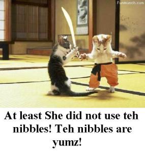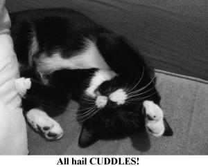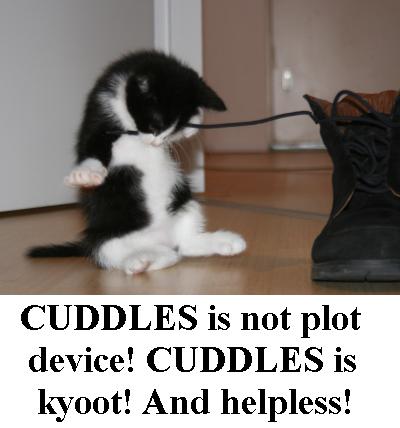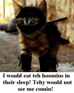 CUDDLES iz a verrah brave kitteh who starred with teh hoominz and did not eat them in their sleep! Ninja Kitteh sez: