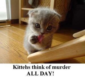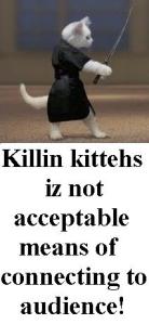 Samurai Kittehs can deal with crappy moviefilm that iz lame, derivative attempt at horror! Samurai Kittehs can not deal with casual use of animal cruelty in moviefilm! Samurai Kittehs verrah upset that Teh Roommate used so cheap a device to engage audience emoshun! Samurai Kittehs would like to remind teh hoominz: