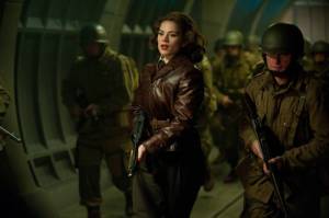 build up, would be to show us a ninety-year-old Peggy and Steve dancing, or to introduce Peggy’s granddaughter as some kind of resolution. Instead we’re left hanging, like Steve. This is how they’re going to make a modern audience care about Steve Rogers—heartbreak. And it works. This I’m going to put down to Whedon since director Joe Johnston (The Rocketeer) has expressed displeasure with having to do this scene, which came as a late reshoot earlier this year. Not everyone loved this ending but I dug it because it avoided all the sappy pitfalls inherent in the problem of having both a real and wonderful romance and the imperative to get your character into the 21st century. I felt that Steve’s last line was the only “out” for the story that didn’t involve a massive eye roll.