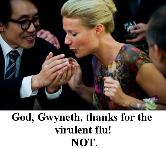 The first act of Contagion focuses on the spread of the disease, a previously-undiscovered strain of virulent flu. As in Traffic, Contagion has a big cast working in plots all over the globe using different color schemes (China is shot in red/gold tones, the Midwest in blue/gray, Atlanta in ochre/blue). We begin on “day 2” and see mining-company executive Beth Emhoff (Gwyneth Paltrow) in an airport on her way home from a trip. We later learn she has been to China to break ground on a new factory. The camera lingers on the spaces around Beth and the things she touches—a bowl of peanuts at a bar, the glass she drinks from, et cetera. Throughout act one, we get similar shots of doorknobs, the poles on buses, cell phones—all the things we commonly touch throughout our days.
