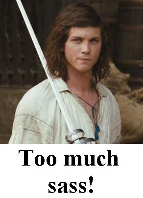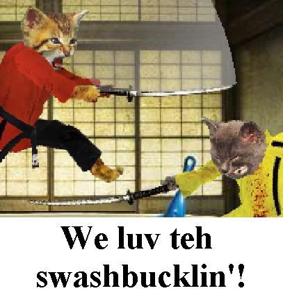 We r back to review teh moviefilm Teh Three Musketeerz! Teh moviefilm haz star of hoominz Logan Lerman, Mattehw Macfadyen, Milla Jovovich, Christoph Waltz and Orlando Bloom! There wuz no kittehs in this moviefilm but we thought we would like it becuz of teh swashbucklin’. Samurai Sword Kitteh sez: