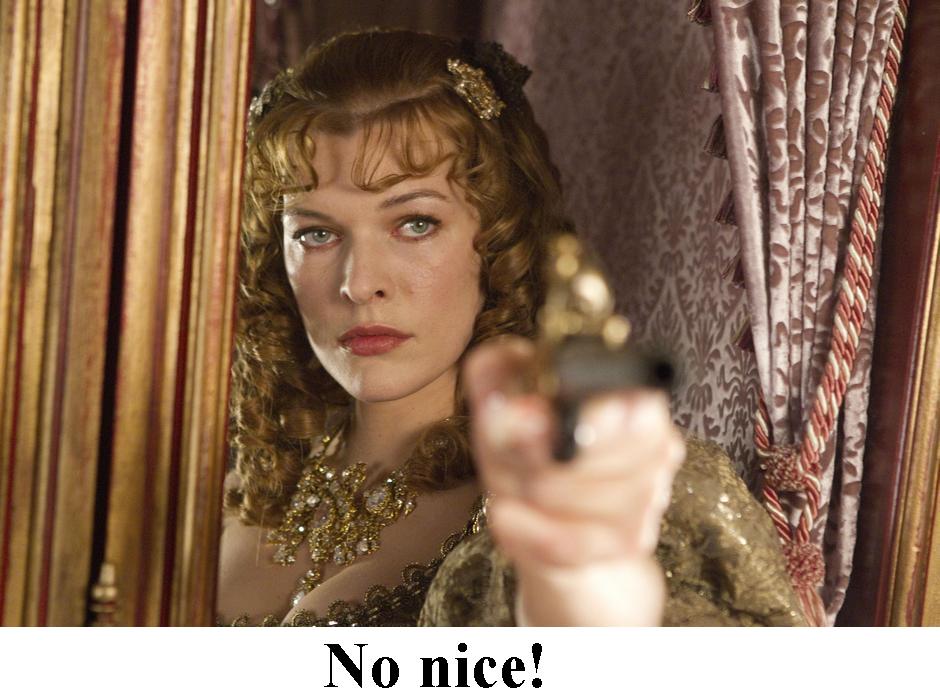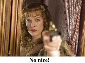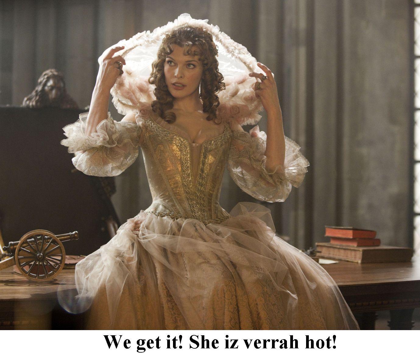 It starts with teh Musketeerz on a mission in Venice! Athos (Macfadyen) can haz scuba suit which makes no sense! In facts, none of teh technology makes sense! Teh hot wife double-crosses teh Musketeerz! She haz no nice!