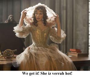 D’Artagnan haz luv of a pretteh hoominz lady of teh queen’s! Becuz he haz luv of her, D’Artagnan gets sucked into plot against queen of France (Juno Temple)! Teh evil Cardinal Richelieu (Waltz) and teh hot wife lady are setting up teh queen and teh English duke they haz hate for to make it look like teh queen and duke haz luv! Teh hot wife lady steals teh queen’s necklace and teh evil Cardinal tells teh king to ask teh queen to wear that necklace to a ball! Teh queen iz devastated when she finds out! Teh pretty hoominz lady asks D’Artagnan to get it back! Daniel-San Kitteh sez: