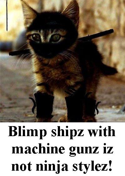 Teh climax iz a silly fight with silly shipz that r like blimpz! Blimp shipz! It iz so silly! Samurai Kittehs could not stop teh laughter and teh rep from teh studiopeeple did not want our laughter! But it wuz so stoopid! Blimp shipz with machine gunz! Ninja Kitteh sez: