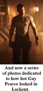 The credit I will give Lockout is Pearce’s performance. He’s charismatic and watchable, he nails all the one-liners, even the ones that don’t work, and he’s a good enough actor to sell you this mess and not seem like he’s whoring himself out (too much). Mostly this is because he does appear to be having fun even as everyone else around him does the acting equivalent of falling into a black hole. Also he got really buff and hot so at least there was a nice gun show to enjoy. But, in the end, I wouldn’t recommend Lockout as anything other “sick with flu and can’t reach the remote while home on a Tuesday” basic cable viewing. Sorry Guy. You deserved so much more.