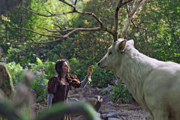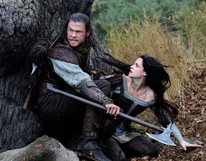 wasn’t calling for anything extraordinary from her. She did look believable throughout the action scenes, because they weren’t asking to her accomplish stunning feats of ass-kickery. It wasn’t like she was taking down a hundred men twice her size—she really only confronts the evil queen and then she kind of gets her ass handed to her before she sucker-punches the queen in a move the Huntsman showed her, designed to take advantage of her smaller, faster frame. There was a sweet sincerity to Stewart’s performance, though, that made Snow White a viable leader when it was time for her to rally the troops.