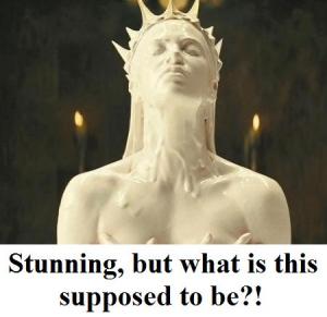 Oh! Another narrative WTF–did anyone else notice that no one ever clarified that it was the huntsman’s kiss that revived Snow White? So as far as anyone is concerned, Snow spontaneously came back from the dead. Zombie queen!
