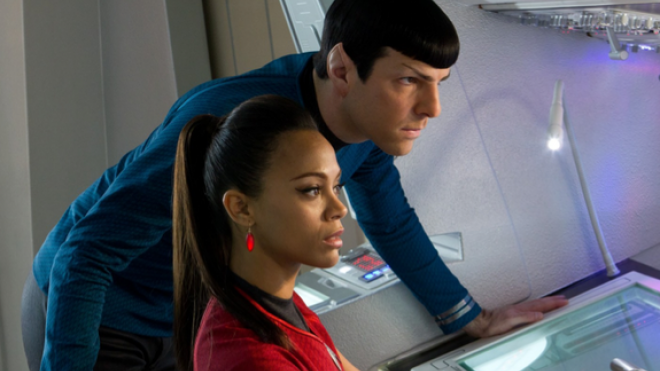Don’t get me wrong—Darkness is fun in stretches. It never quite hangs together, but individual scenes are exciting, and there are a couple righteous brawls to tide over the action-hungry audience members. But in between those points it’s slow and uneven, with a huge amount of narrative going unscoped in favor of leaping into more action (could have done without the space drop sequence as it was very similar to the base jumping scene in the first film). Still, there are enough up beats to keep the film going. The effect of the ships going into warp drive was lovely every time it was used and Kirk finding out Spock and Uhura (Zoe Saldana) were fighting and exclaiming, “What is that even like?” drew a big laugh. It’s not a bad movie, it’s just not any kind of continuation of or improvement on the first film.